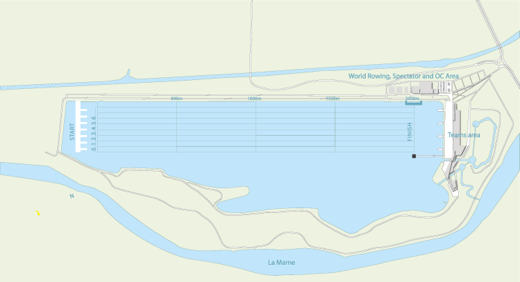 22 km away from the center of Paris, created on the site of an old gravel pit and near the Marne, the Vaires-sur-Marne regatta course is part of 50 landscaped hectares and is part of a high sustainable development strategic plan.